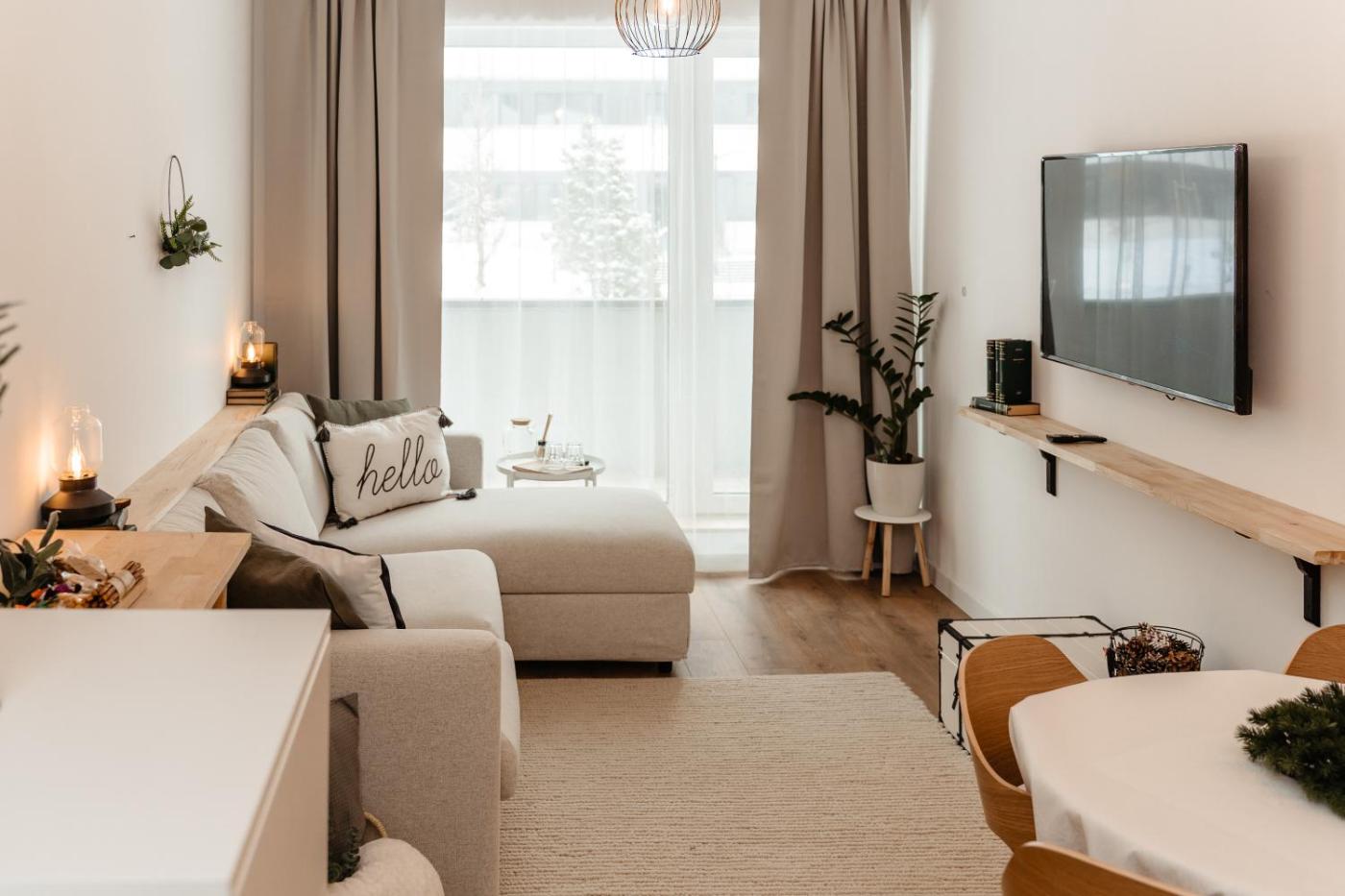 One-Bedroom Apartment. Boasting a private entrance, this apartment features 1 living room, 1 separate bedroom and 1 bathroom with a shower and a hairdryer. In the kitchen, guests will find a stovetop, a refrigerator, a dishwasher and kitchenware. The apartment features a flat-screen TV with streaming services, a washing machine, soundproof walls, a tea and coffee maker as well as garden views. The unit has 3 beds.
