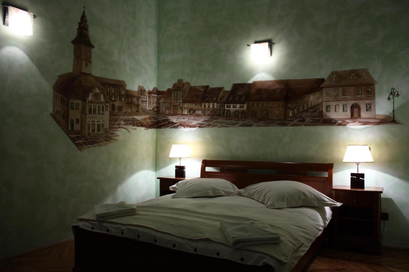 Double Room. These rooms feature mural paintings showing Brasovs historical monuments, including Casa Sfatului. The large bathroom comes with a reconditioned historic tub or a shower. ;