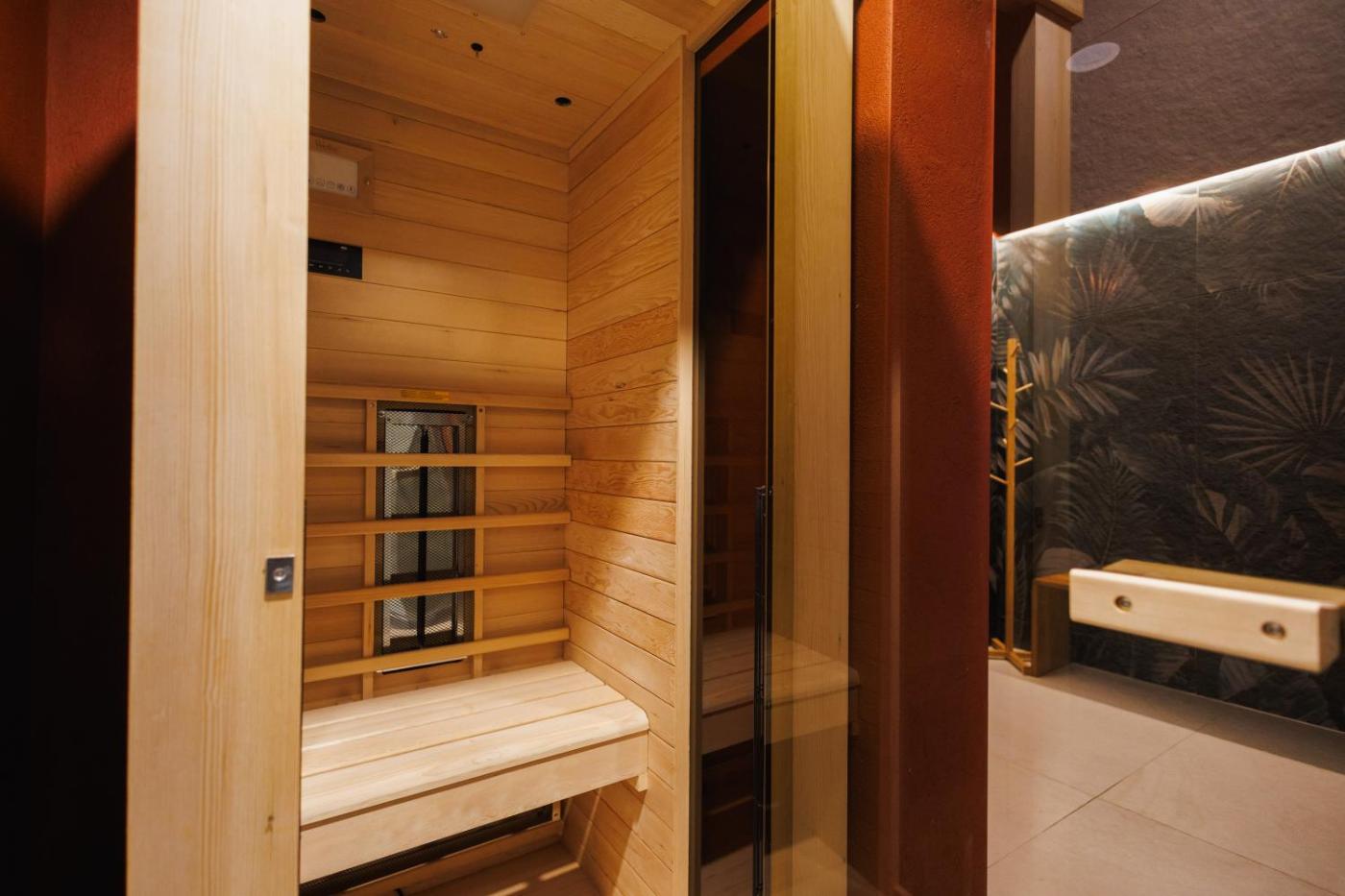 One-Bedroom Apartment. The pool with a view and sauna are the special features of this apartment. Boasting a private entrance, this air-conditioned apartment features 1 living room, 1 separate bedroom and 1 bathroom with a walk-in shower and a hairdryer. In the kitchen, guests will find a stovetop, a refrigerator, a dishwasher and kitchenware. Featuring a terrace with garden views, this apartment also features soundproof walls and a flat-screen TV with streaming services. The unit has 2 beds. ;