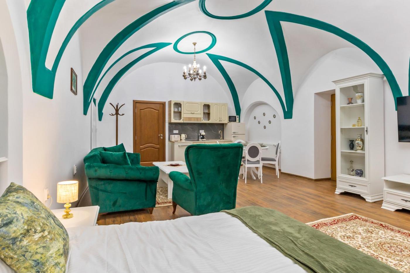 Family Studio. The spacious family room offers a tea and coffee maker, a dining area, as well as a private bathroom boasting a shower and a hairdryer. In the fully equipped kitchen, guests will find a stovetop, a refrigerator, kitchenware and a microwave. The family room features a wardrobe, a sofa, heating and a flat-screen TV. The unit has 2 beds. ;