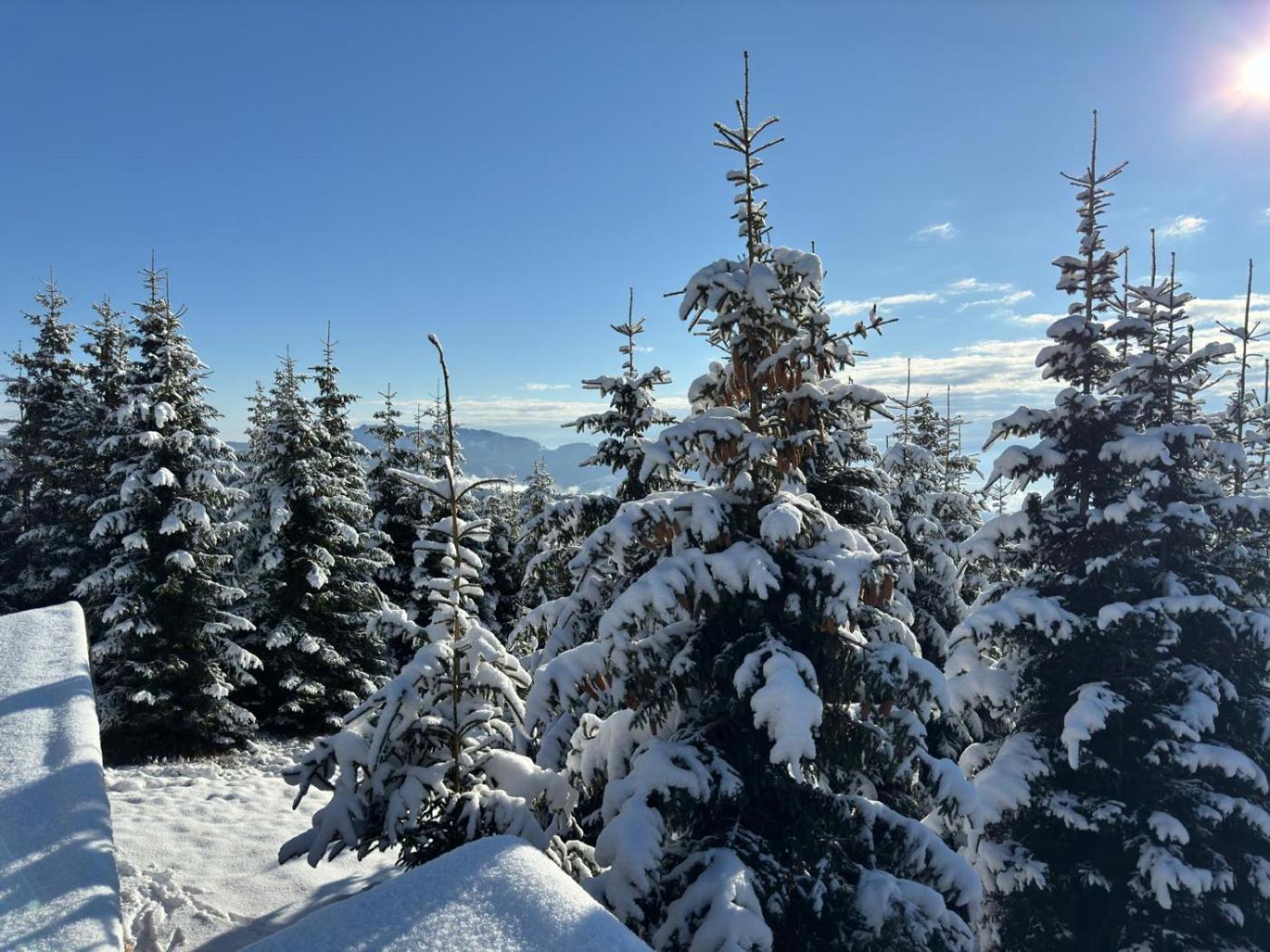 For guests with children, the holiday home provides an indoor play area. Guests can also warm themselves near outdoor fireplace after a day of skiing.